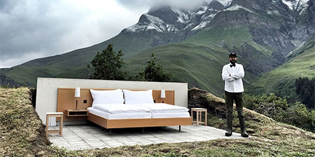 Необычный отель появился в  горах Швейцарии. Открытые комнаты без стен и крыши позволяют туристам насладиться  звездным небом ночью и красотами пейзажа днем. В отеле Нурн Штерн удобные кровати, а что еще нужно для глубокого приятного сна. Природный дизайн оказался наиболее подходящим для владельца отеля. Да и кто бы отказался от идеи совместить творческий подход с бюджетным дизайном интерьера.